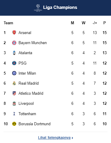 Klasemen Liga Champions