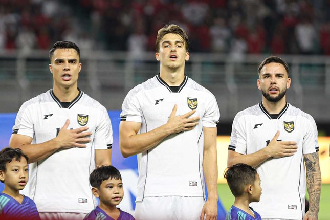 | Joey Pelupessy, Mauro Zijlstra, dan Calvin Verdonk saat membela Timnas Indonesia pada laga melawan Lebanon (c) Abdul Aziz |